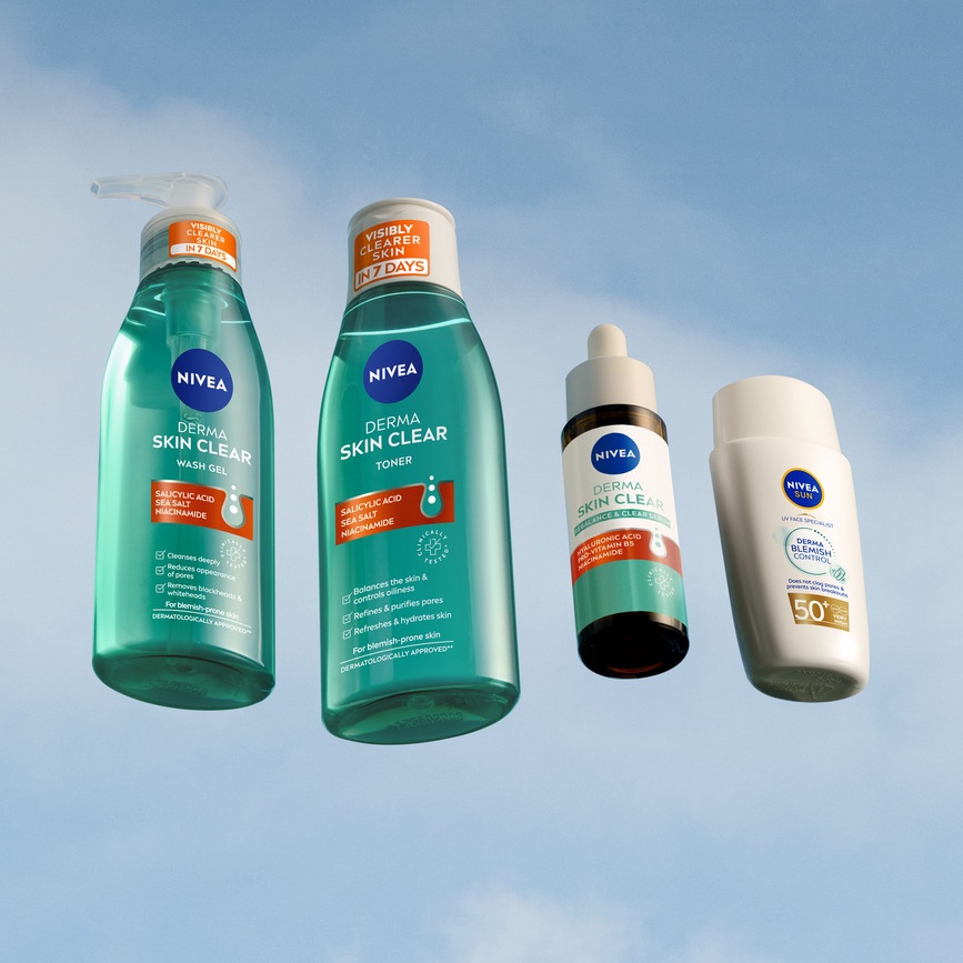 B‑vitamiinia käytetään usein myös aknen ja epäpuhtauksiin taipuvaisen ihon tukena. Sen tulehdusta vähentävät ominaisuudet voivat auttaa lieventämään aknea ja ehkäistä sen pahenemista ulkoisten tekijöiden vaikutuksesta. B3‑vitamiinin niasiiniamidi on erityisen tehokas rauhoittamaan tulehtunutta aknea, vahvistamaan ihon suojakerrosta ja vähentämään tulehdusta. NIVEA Derma Skin Clear -sarja on rikastettu B3‑vitamiinin niasiiniamidilla avaamaan tukkeutuneet ihohuokoset ja auttamaan vähentämään näppyjen näkyvyyttä kuivattamatta ihoa – hyvä valinta epäpuhtauksiin taipuvaiselle iholle.