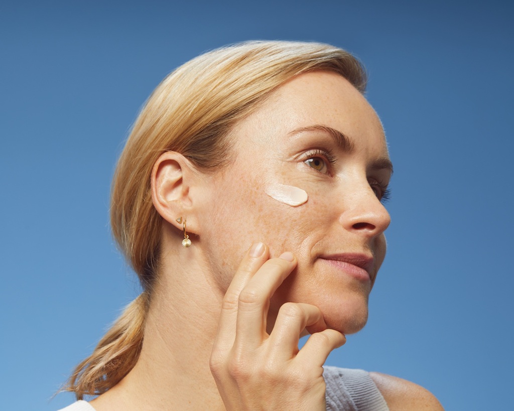 Levitä säännöllisesti laajakirjoista aurinkovoidetta ja valitse korkea SPF. Suojaa kaikki paljaana olevat alueet, kuten kasvot ja kädet. Hyvä nyrkkisääntö on lisätä voidetta vähintään kahden tunnin välein. Lisää aurinkosuojaa useammin, jos uit tai hikoilet. Näin ehkäiset auringon aiheuttamia pigmenttimuutoksia (auringonpilkku) ja maksaläiskiä.
