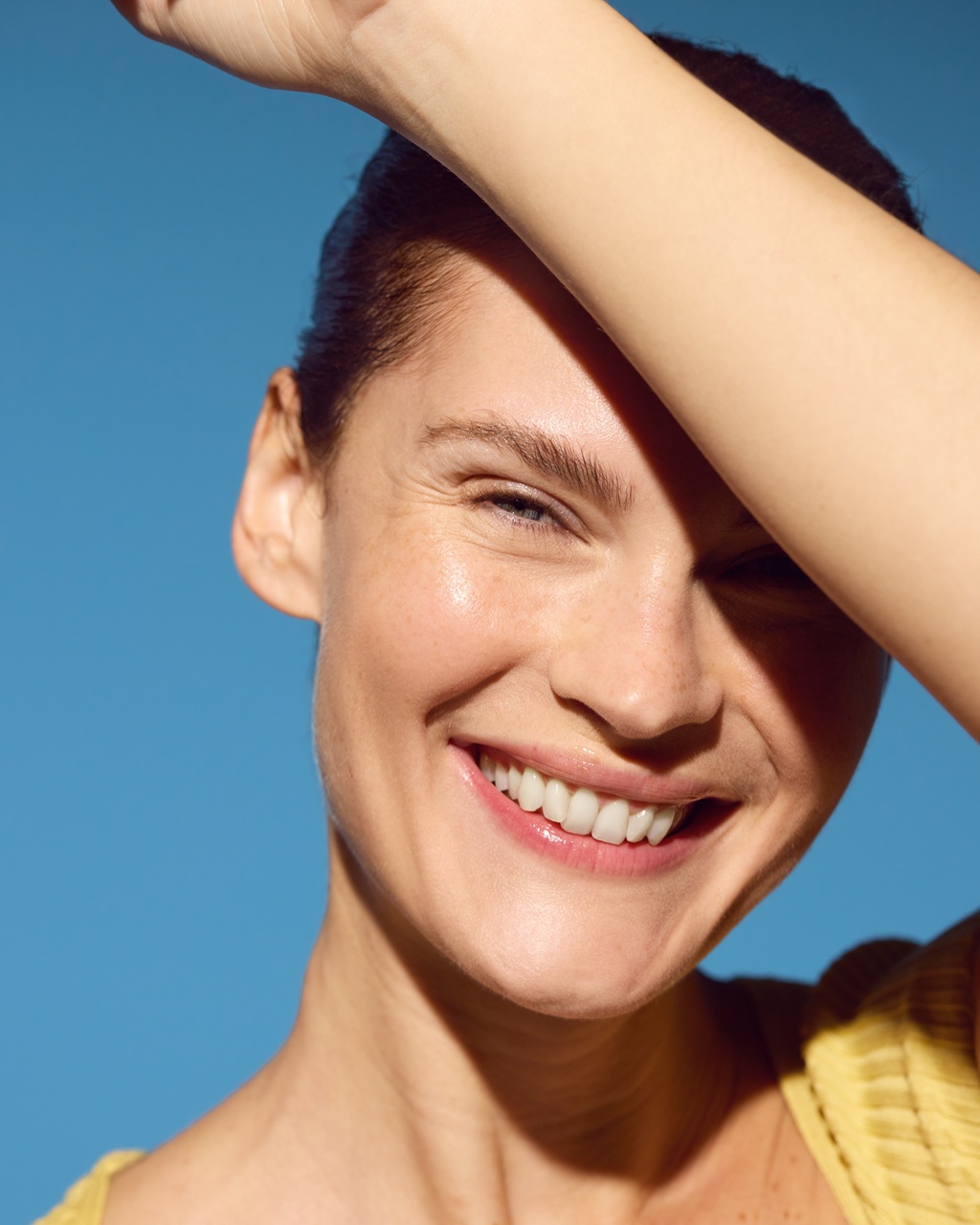 Levitä laajakirjoista aurinkosuojaa herkälle iholle päivittäin, myös pilvisinä päivinä. Tämä suojaa ihoa UV-vaurioilta, jotka voivat aiheuttaa punoitusta ja läiskiä.
