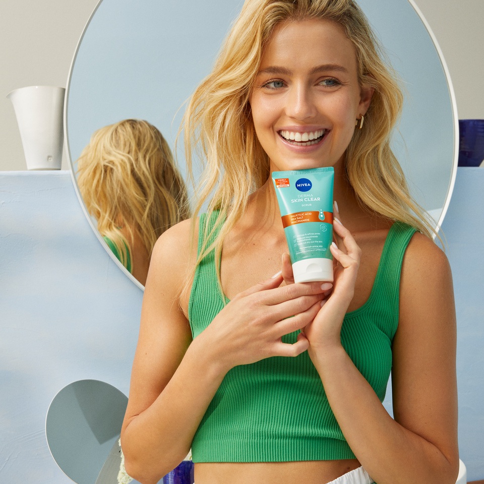 NIVEA Derma Skin Clear -tuotesarja on kliinisesti testattu ja kehitetty epäpuhtauksiin taipuvaiselle iholle. Sarjan erikoistuotteet voivat auttaa hallitsemaan liiallista talia, vähentämään siihen liittyviä huolia ja edistämään kirkasta ihoa.
