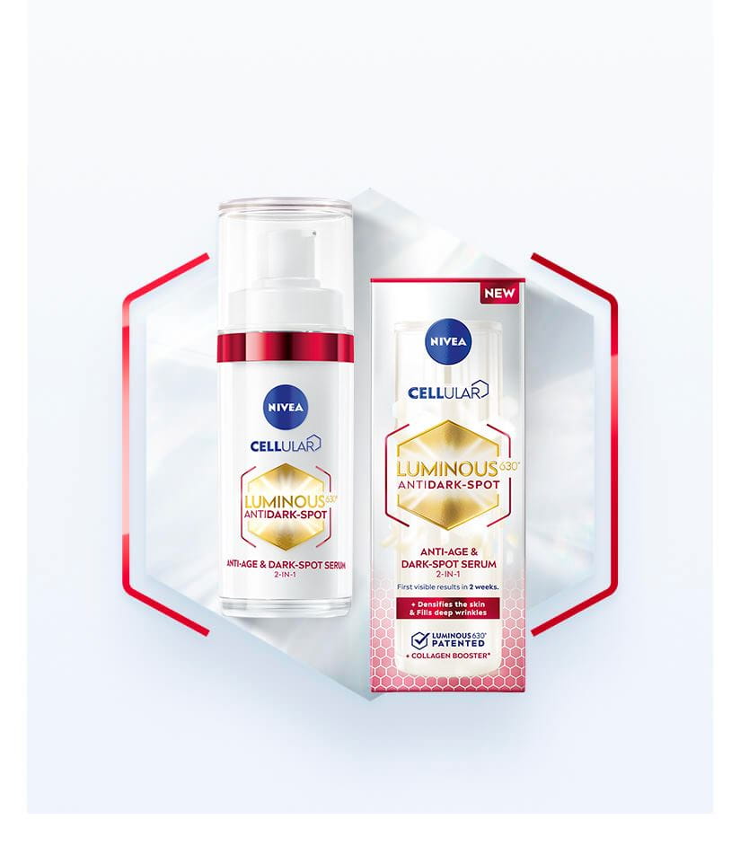 NIVEA LUMINOUS630® -tuotesarjan lanseerauksen jälkeen olemme laajentaneet valikoimaamme uusilla kasvoseerumeilla, jotka on erityisesti kehitetty vähentämään erilaisia pigmenttiläiskiä ja hoitamaan ihon eri tarpeita. Nämä seerumit ovat todellinen must-have - jo yli miljoona naista on vakuuttunut NIVEA LUMINOUS630® tehokkuudesta pigmenttiläiskiä vastaan.
