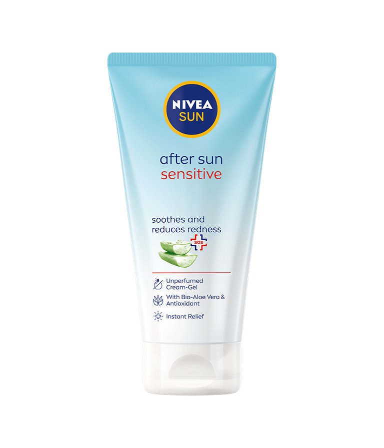 NIVEA SUN After Sun Sensitive Cream-gel rauhoittaa ja kosteuttaa ihoa auringonoton jälkeen sekä vähentää iho punoitusta.