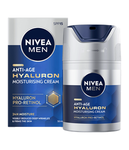 NIVEA MEN Anti-Age Hyaluron Eye Cream -silmänympärysvoide kosteuttaa ihoa tehokkaasti ilman rasvaista tunnetta iholle. Sisältää hyaluronihappoa, joka antaa anti-age-vaikutuksen iholle.