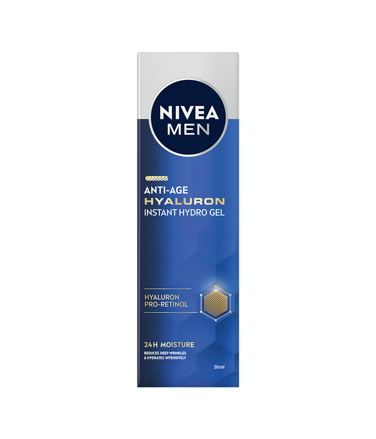 NIVEA MEN Anti-Age Hyaluron Face Moisturising Gel -kasvogeeli kosteuttaa ihoa tehokkaasti, vähentää näkyvästi ryppyjä ja virkistää ihoa.