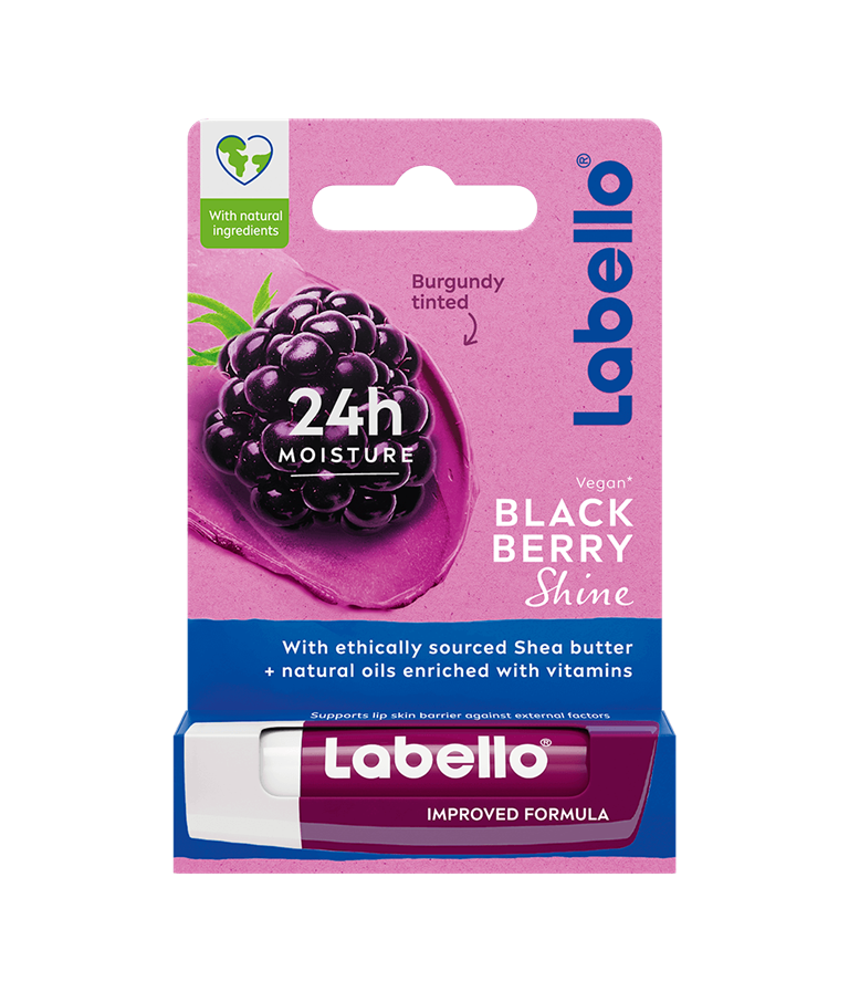 Labello Blackberry Shine -huulivoide antaa kauniin sävyn huulille ja pitää ne kosteutettuina.