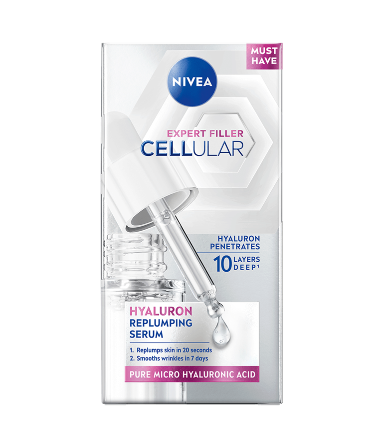 NIVEA Cellular Expert Filler Hyaluron Replumping Serum -kasvoseerumi on edistyksellinen anti-age-tuote, joka tekee ihosta kosteutetun, sileämmän ja nuoremman näköisen.