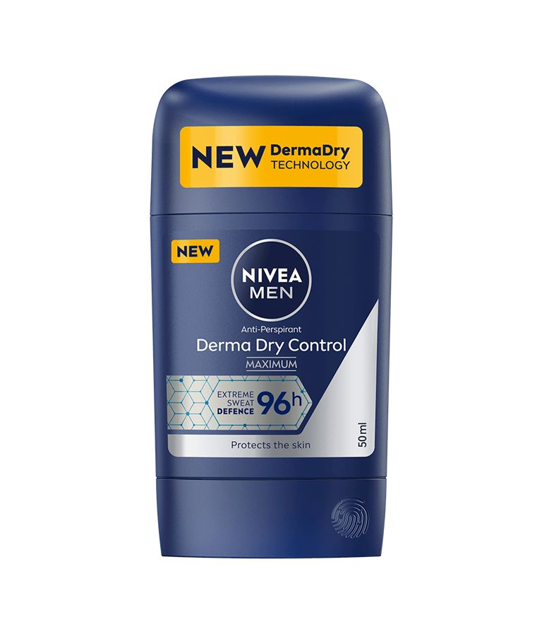 NIVEA MEN Derma Dry Control Maximum Stick -antiperspirantti tarjoaa ihoa hoitavan 96 tunnin tehokkaan antiperspiranttisuojan hikoilua ja epämiellyttävää hajua vastaan.