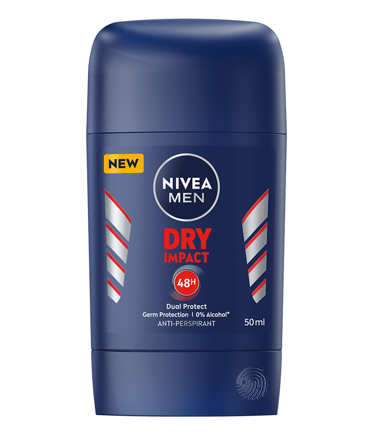 NIVEA MEN Dry Impact Stick -antiperspirantti antaa tehokkaan ja luotettavan suojan hikoilua vastaan jopa 48 tunniksi.