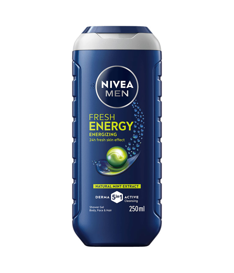 NIVEA MEN Fresh Energy Shower Gel -suihkugeeli puhdistaa, virkistää ja hoitaa ihoa tehokkaasti. Luonnollista minttu-uutetta sisältävä koostumus antaa energiaa iholle ja saa sinut liikkeelle.