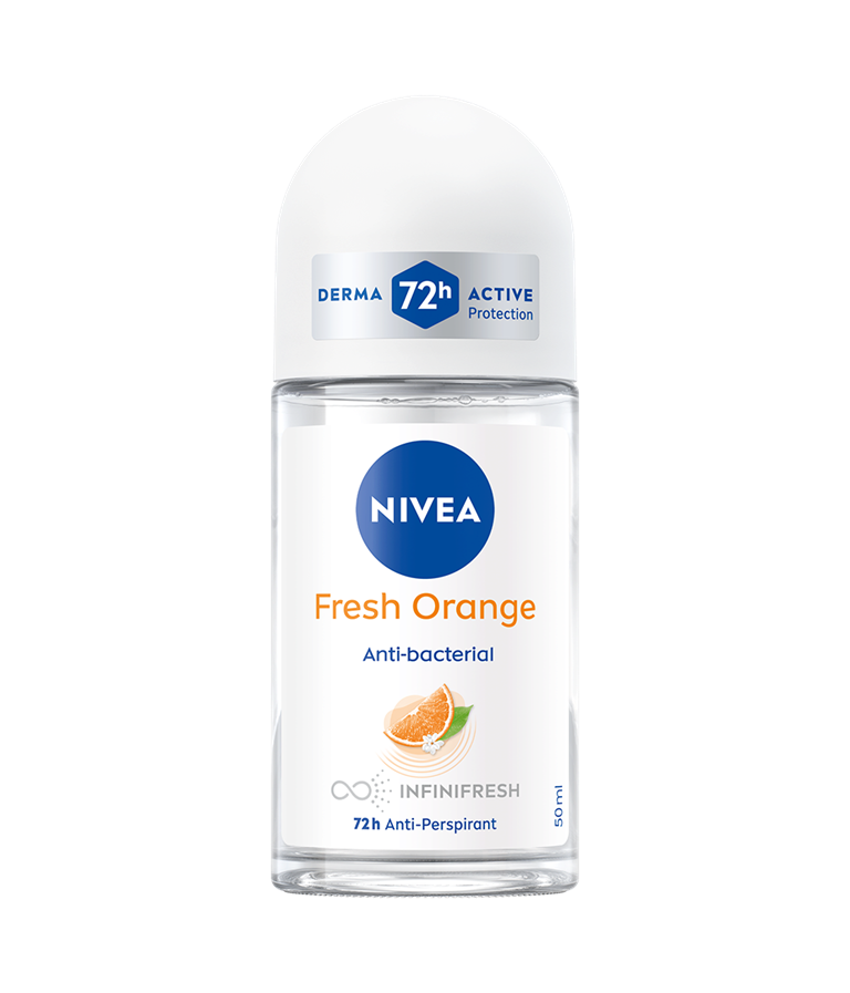 NIVEA Fresh Orange Deo Roll-on -antiperspirantti antaa iholle raikkaan tunteen. Ihanan raikas appelsiinin tuoksu. Luotettava 48 tunnin antipespiranttisuoja, joka hoitaa ihoa.