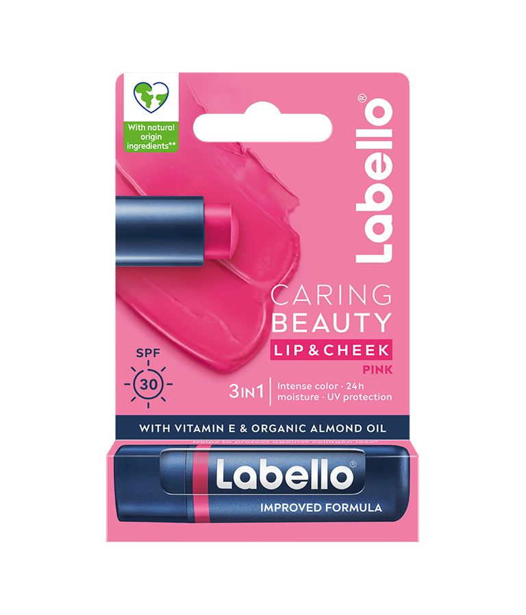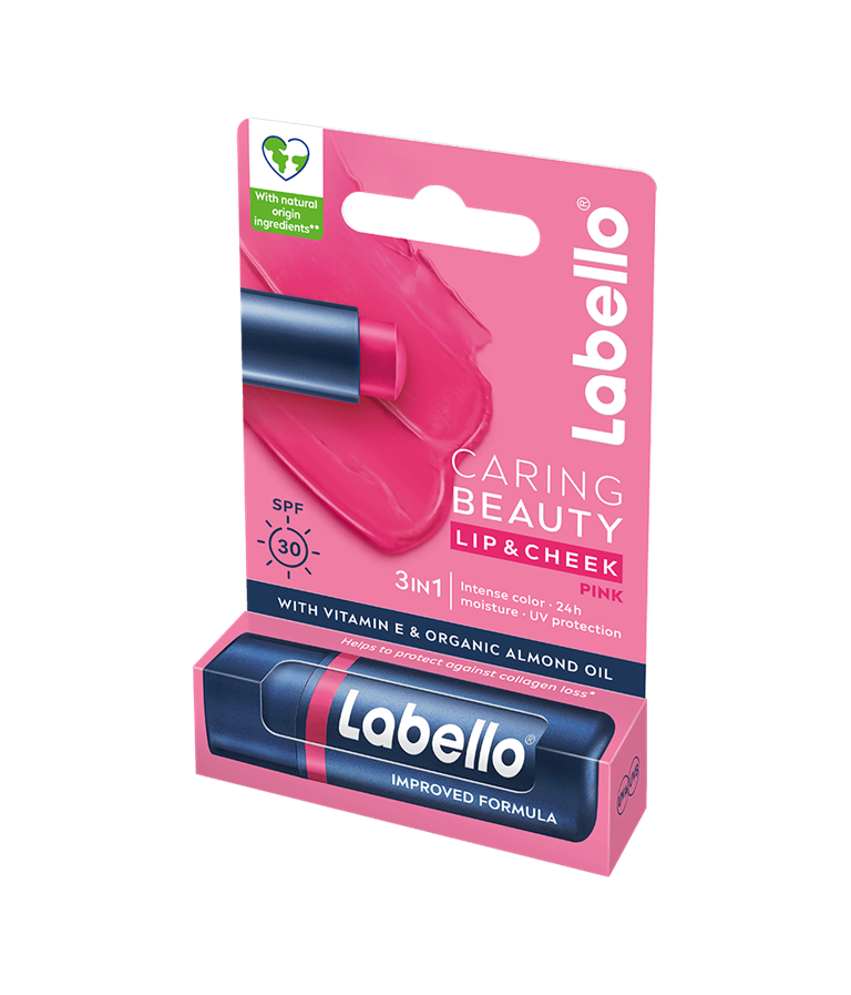 Labello Caring Beauty Pink - sävyttävä voide huulille ja poskille. Kosteuttaa huulia ja ihoa 24 tunnin ajan. Voidemainen koostumus antaa intensiivisen värin, käytä huulivoiteena, poskipunana tai molempina! 3in1-koostumus tarjoaa sävyn, hoitoa ja suojaa!