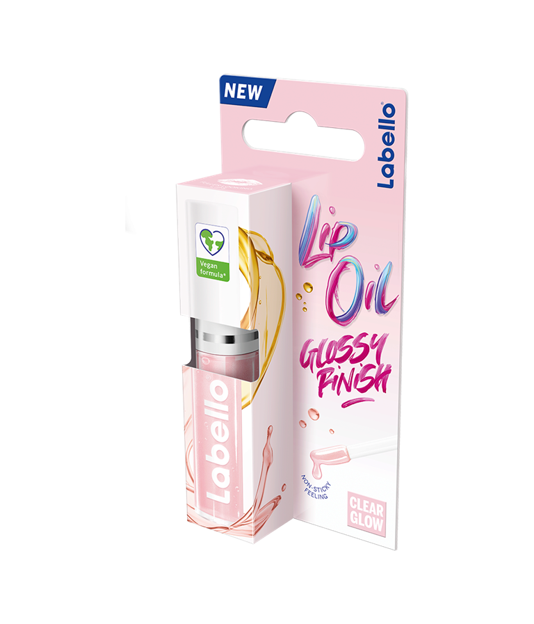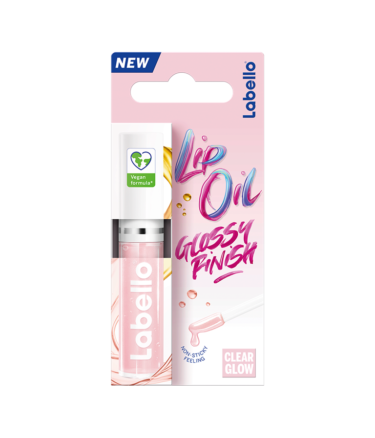 Labello Caring Lip Oil Clear Glow -huuliöljy kosteuttaa huulia välittömästi ja antaa kiiltävän lopputuloksen ilman tahmaista tunnetta huulilla.