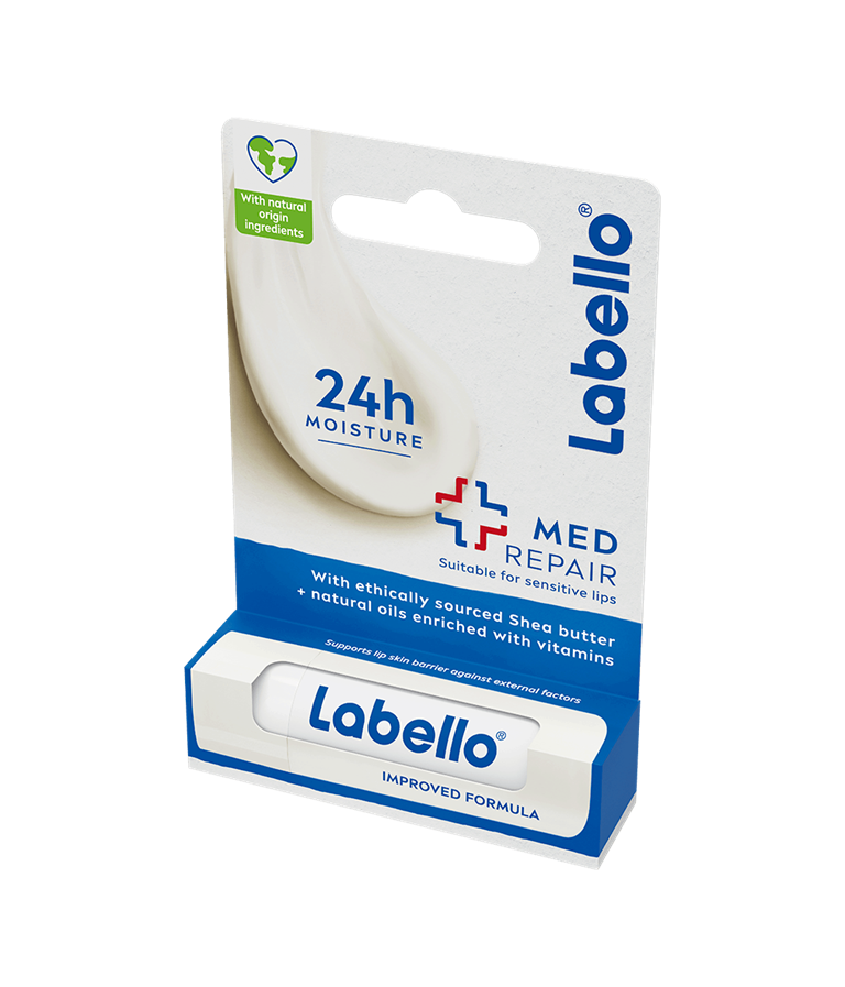 Hoida kuivia ja rohtuneita huuliasi Labello Med Repair -huulivoiteella! Ainutlaatuinen, hoitava koostumus imeytyy välittömästi huulille.