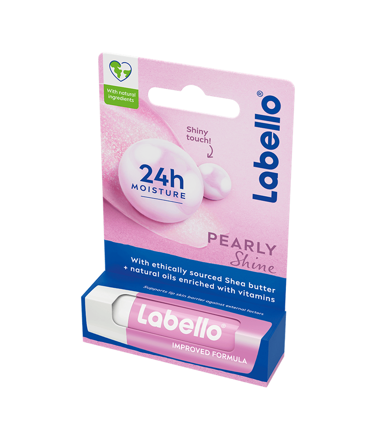 Labello Pearly Shine imeytyy välittömästi, antaa huulille kauniin kiillon ja pitää ne kosteutettuina.