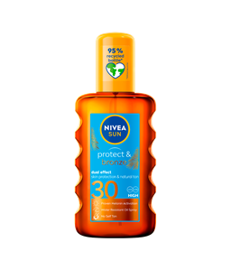 Luotettava suoja UV-säteilyn lyhyt- ja pitkäaikaisia haittavaikutuksia vastaan uudella, nopeasti imeytyvällä NIVEA SUN Protect & Moisture Sun Spray -aurinkosuojasuihkeen Citracell-Protect™ -koostumuksella.