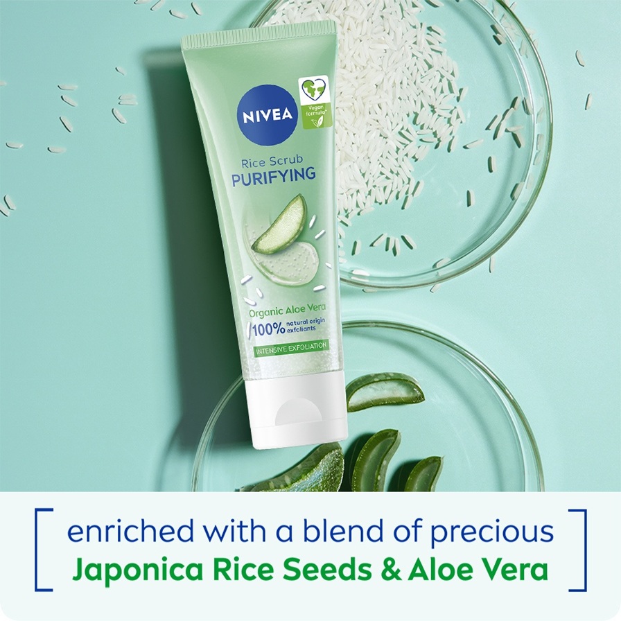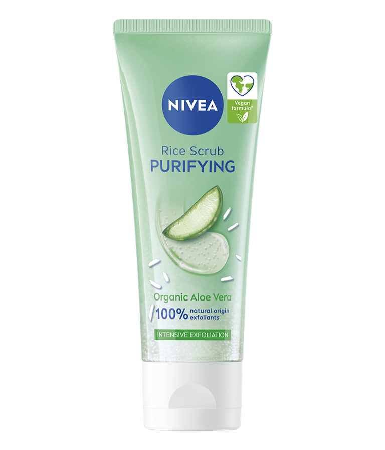 NIVEA Purify Rice Scrub -kasvojenkuorintavoide kuorii ihon tehokkaasti vahingoittamatta sitä, poistaa mustapäitä, syväpuhdistaa ihohuokosia ja häivyttää niitä. Tekee ihosta mattapintaisen.