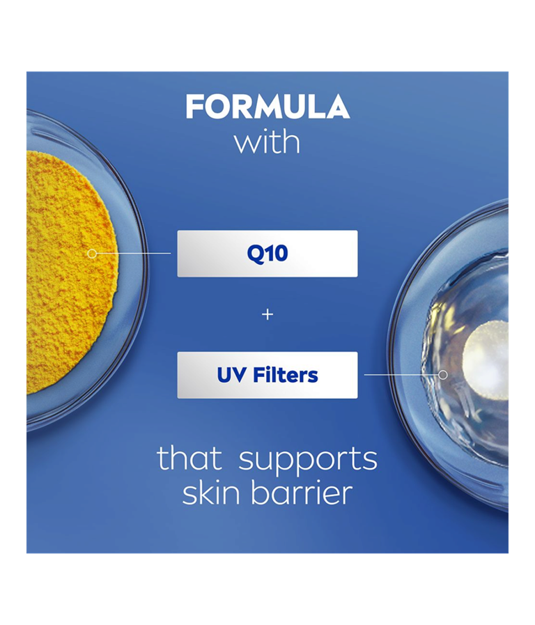 Q10-koentsyymiä ja UV-suodattimia sisältävä NIVEA Q10 Anti-Age Hand Cream -käsivoide auttaa ehkäisemään ihon ikääntymisen merkkejä, vähentää ryppyjä ja parantaa ihon joustavuutta.
