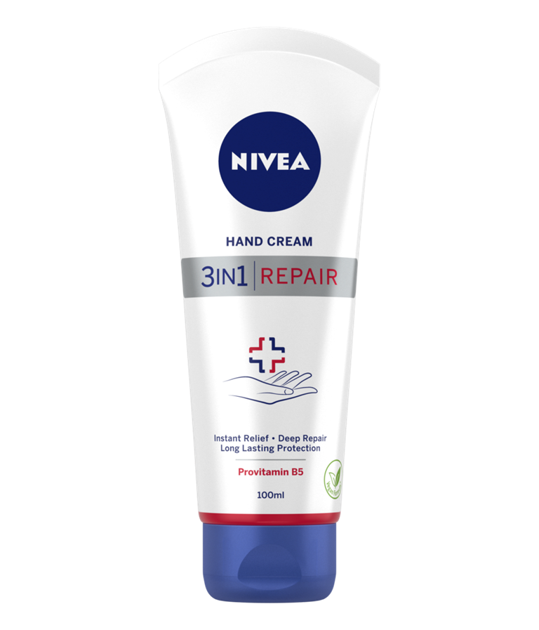 NIVEA Repair Hand Cream -käsivoide rauhoittaa erittäin kuivien käsien ihon välittömästi ja pitkäkestoisesti.