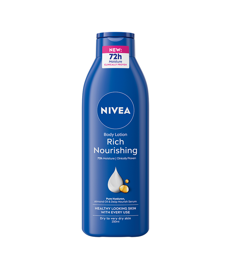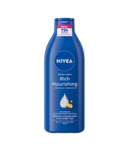 NIVEA Rich Nourishing Body Milk - vartaloemulsio kosteuttaa ihoa tehokkaasti ja pitkäkestoisesti 72 tunnin ajan. Suunniteltu erityisesti kuivalle ja erittäin kuivalle iholle.