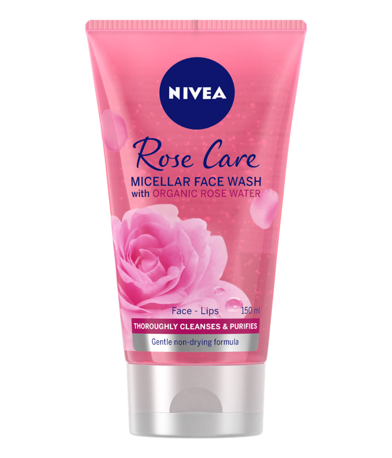 NIVEA Rose Care Micellar Face Wash -puhdistusgeeli sisältää luonnonmukaista ruusuvettä. Se poistaa vedenkestävän meikin ilman hankausta.