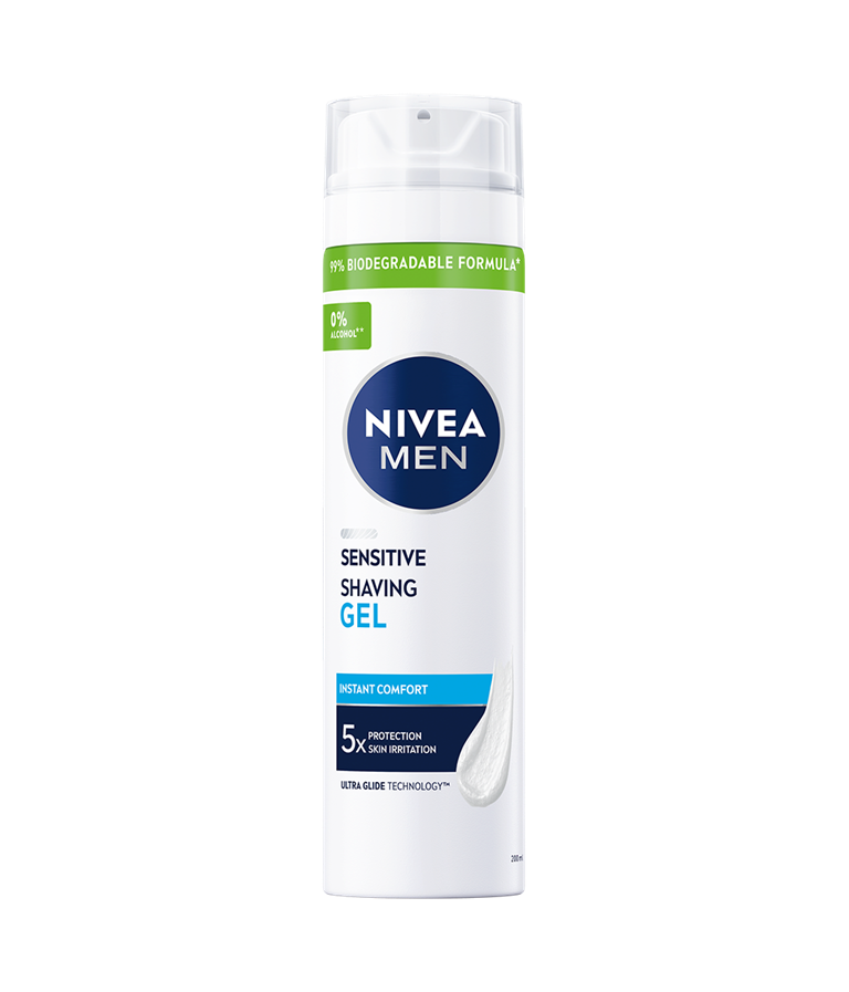 Erityisesti herkälle iholle suunniteltu NIVEA MEN Sensitive Shaving Gel -parranajogeeli varmistaa miellyttävän parranajon ja antaa tehokkaan suojan ärsytykseltä.