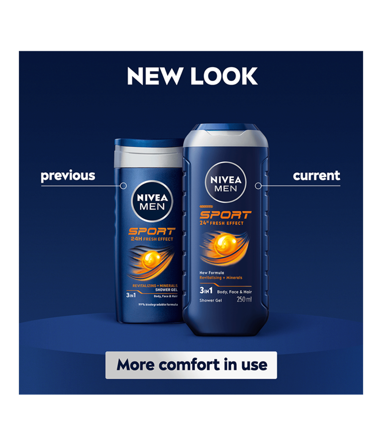 NIVEA MEN Sport Shower Gel -suihkugeeli virkistää ja raikastaa hetkessä. Hoitaa ihoa optimaalisesti ja jättää sen raikkaaksi.